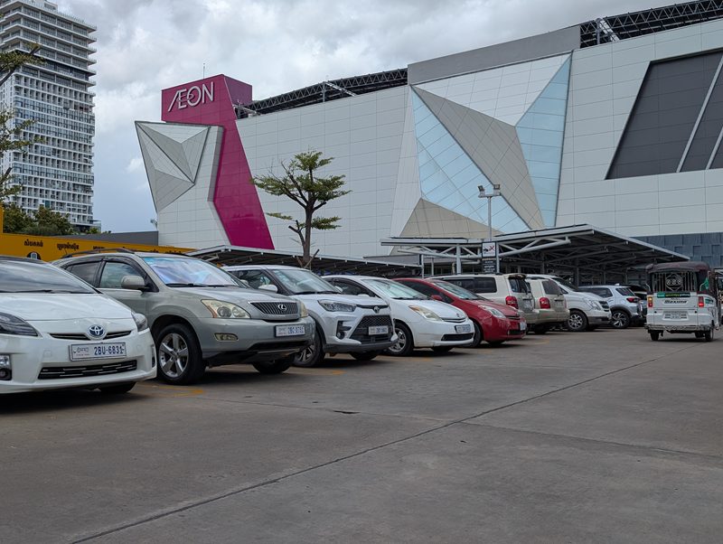 さらに足を延ばし、日本が誇るイオンにも行ってきた。イオンモールプノンペン。用は無かったけど、どんな感じか見学のみ。まず駐車場には多くの日本車。っていうかトヨタ車。カンボジアは、ざっくり7割くらいが日本車で、そのうち8割くらいはトヨタ車な気がする。モールの中は日本同様キレイ。トイレもキレイで、さすが日本企業って感じで好印象。どこよりも混んでた(笑)