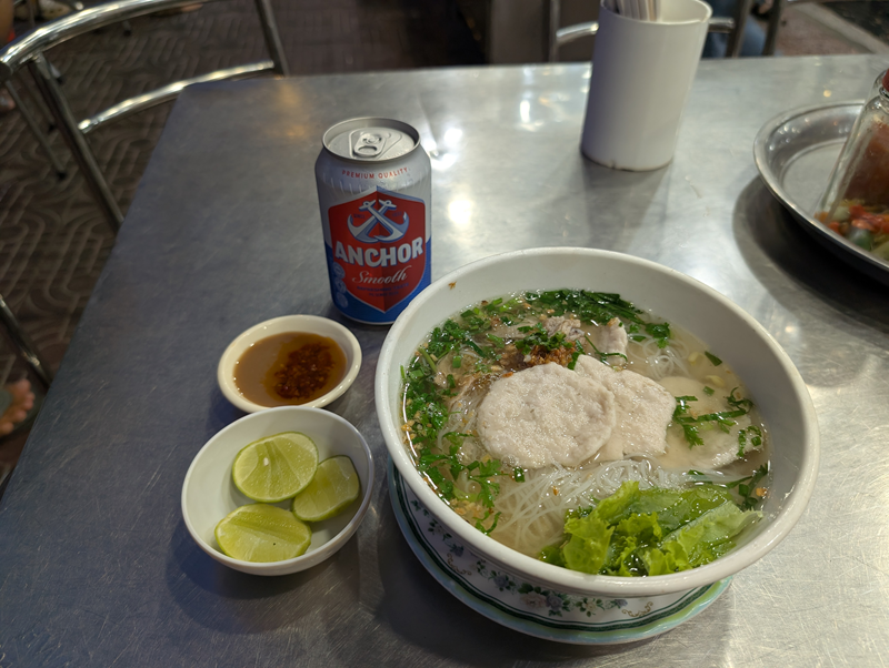 洗濯を待ってる間に、近くの食堂で晩ごはん。米粉のスープ麺と缶ビール。値段は昼と全く同じ。店を決めるコツはね、多くの人がいて繁盛してる感じの店。当然だけど外れなし。めちゃ美味かった。ひっきりなしに地元常連さんもきてた。ごちそうさん。