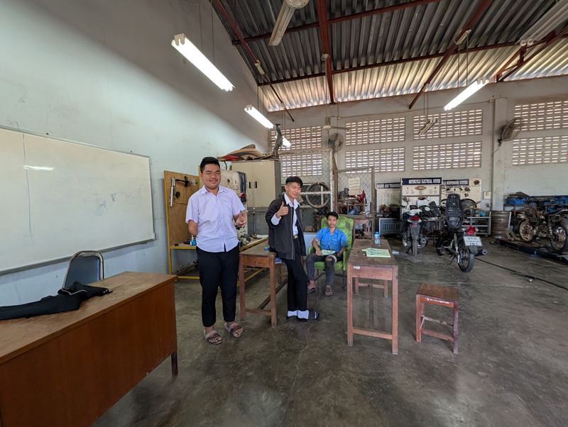 とはいえ、無いより有った方がイイ。一生懸命勉強してる若者たちがいた。彼らは2年間の訓練を経て、各々の分野で就職できてるようで、そこに関しては安心した。クラスは経営(主にパソコン)、電子機器(主に家電修理)、オートバイ(主に修理)、縫製(女性対象)の4クラス。縫製のクラスだけ見逃した!
