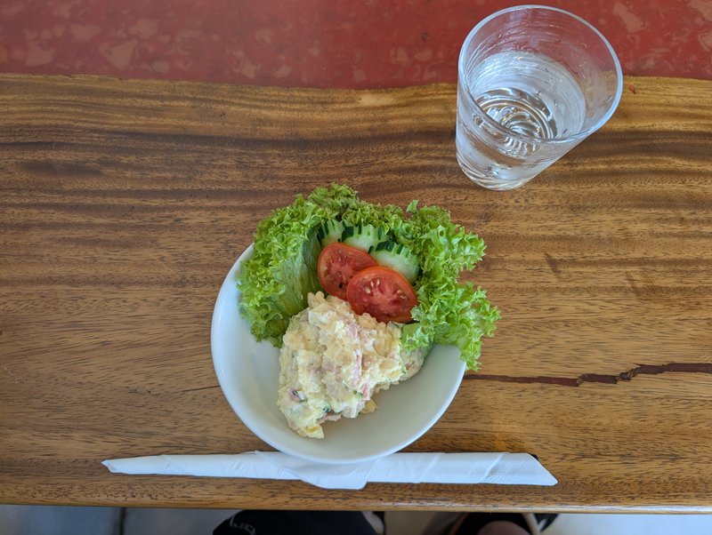ところで、昨日の20時頃から何も食べてなかったから、超腹ペコでランチに出かけた。一昨日伺った日本食レストランに。17時間ぶりの食事はまた大当たり。ハンバーグランチとポテサラで155,000LAK(約1,100円)ってところ。今日は画像撮ってきた。車いすで行ける距離で、車いすで入れる店だと、ここが一番かしら。ビィエンチャン滞在中は、お世話になる感じかも〜(笑)