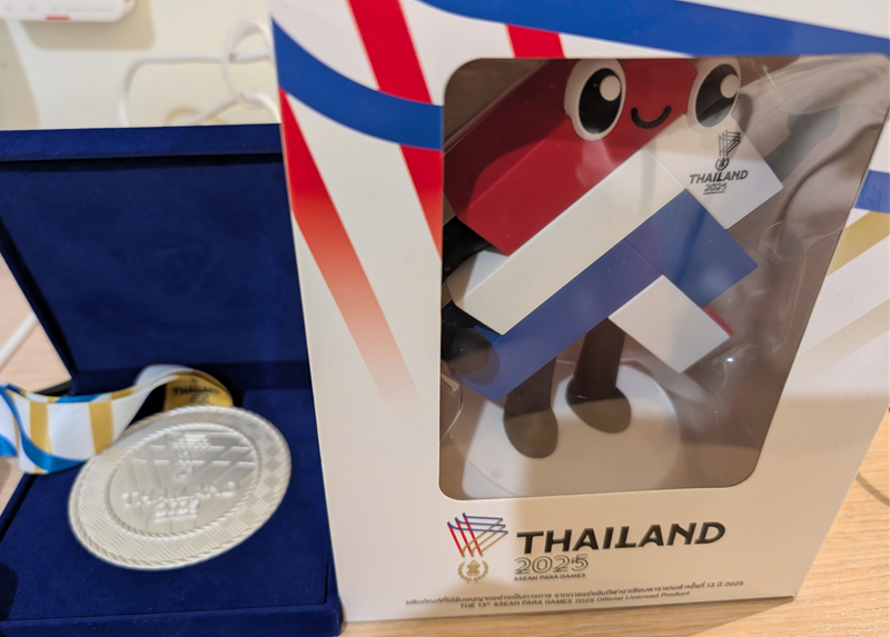 そうそう、久しぶりに国際大会に参加させてもらい、メダルとマスコットを頂けたけど、荷物になるし、断捨離を進めてるから、ラオスに置いていくことに。記念に画像だけ残した。