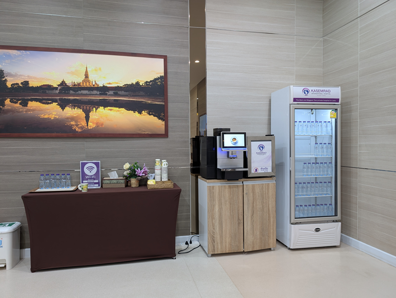 今回受診した病院は、JICA御用達で、タイ資本の総合病院。噂だとビエンチャンでは、1、2を争う信頼が高い病院みたい。きれいで立派な建物だったし、待合室にはfreeWi-Fiサービスのほか、水やコーヒーが無料で自由に飲める。