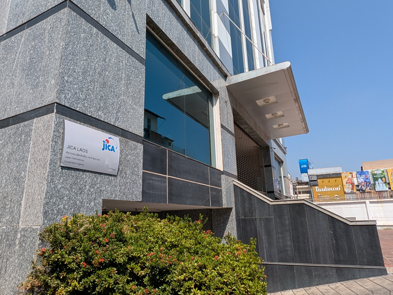今日は午前中に、最後の街散策へ行ってきた。たまたまJICAのラオス事務所を発見。そういえば、今回事務所に1度も行くことがなかった。若干バリアなオフィスというウワサも(苦笑)だけど、せっかくだからビルをひと回りして、入り口をカメラに収めてきた。